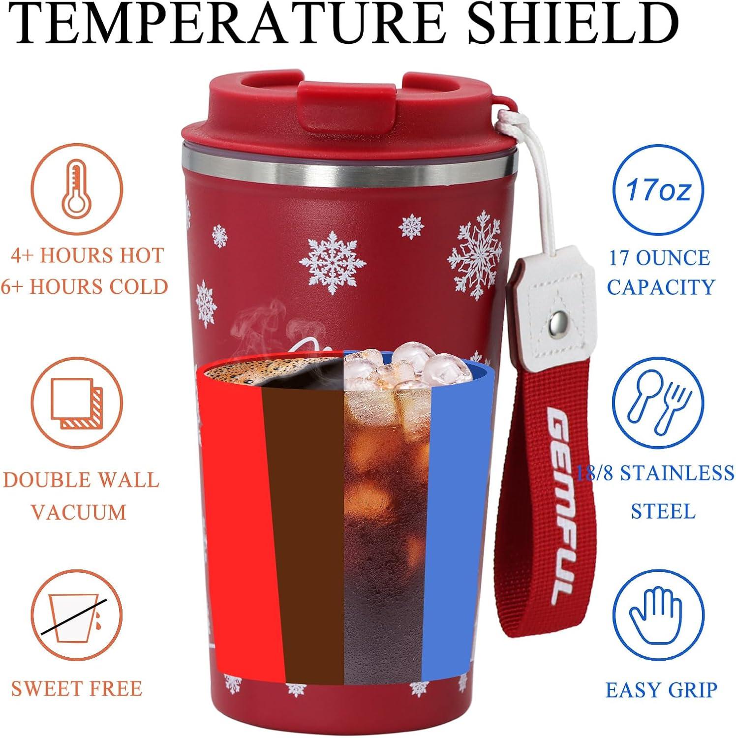 GEMFUL Spill Proof Leak Proof Coffee Travel Mug 17oz Stainless Steel Vacuum Insulated Tumbler with Secure Lid Reusable Hot Cold Portable Cup for Commute Office Car(Red)