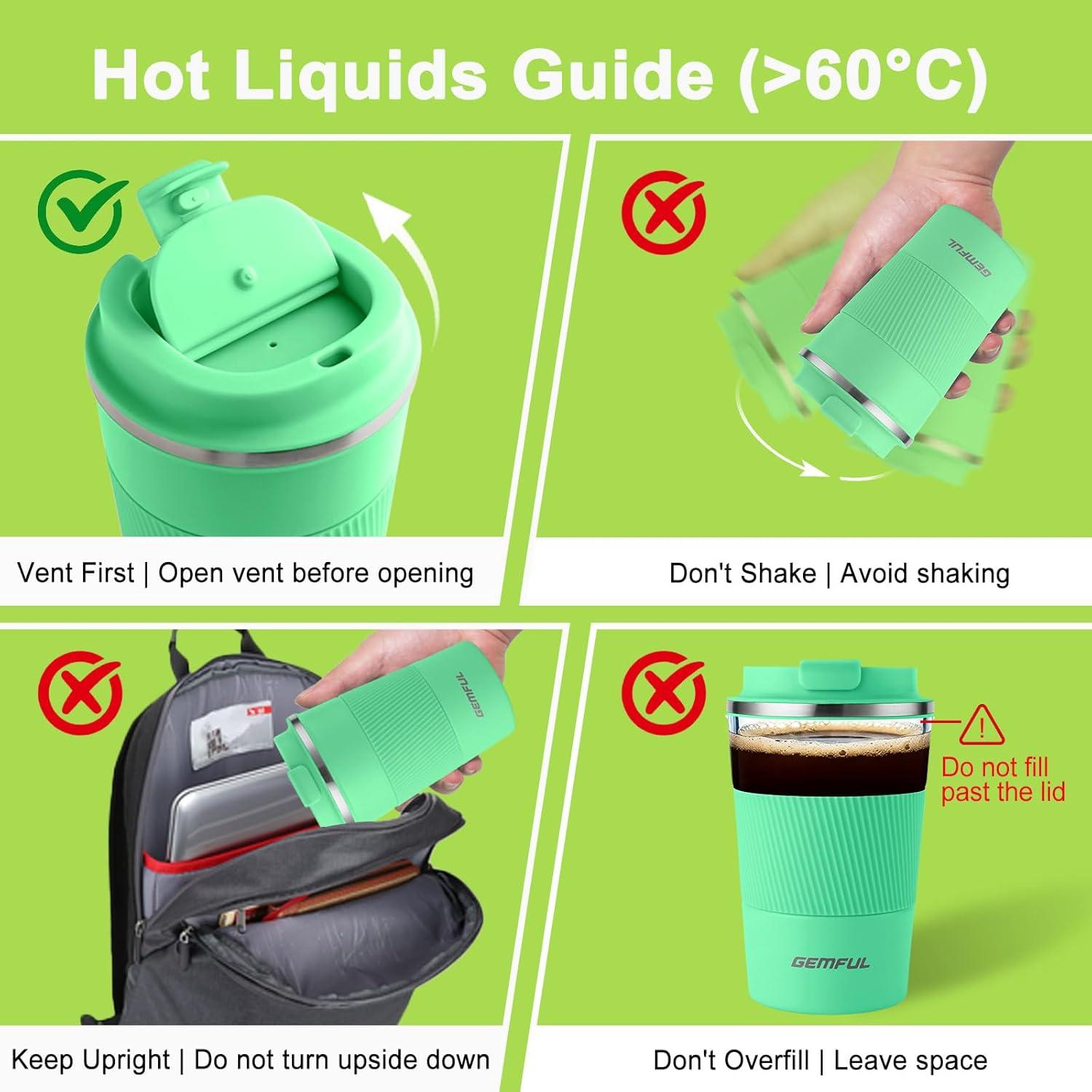 GEMFUL To Go Travel Coffee Mug with Lid 13 oz Insulated Cups Spill Proof Tumbler Leak Proof Vacuum Stainless Steel Reusable for Hot Cold Drinks Women Men (6 Pack)(Green-13 oz)