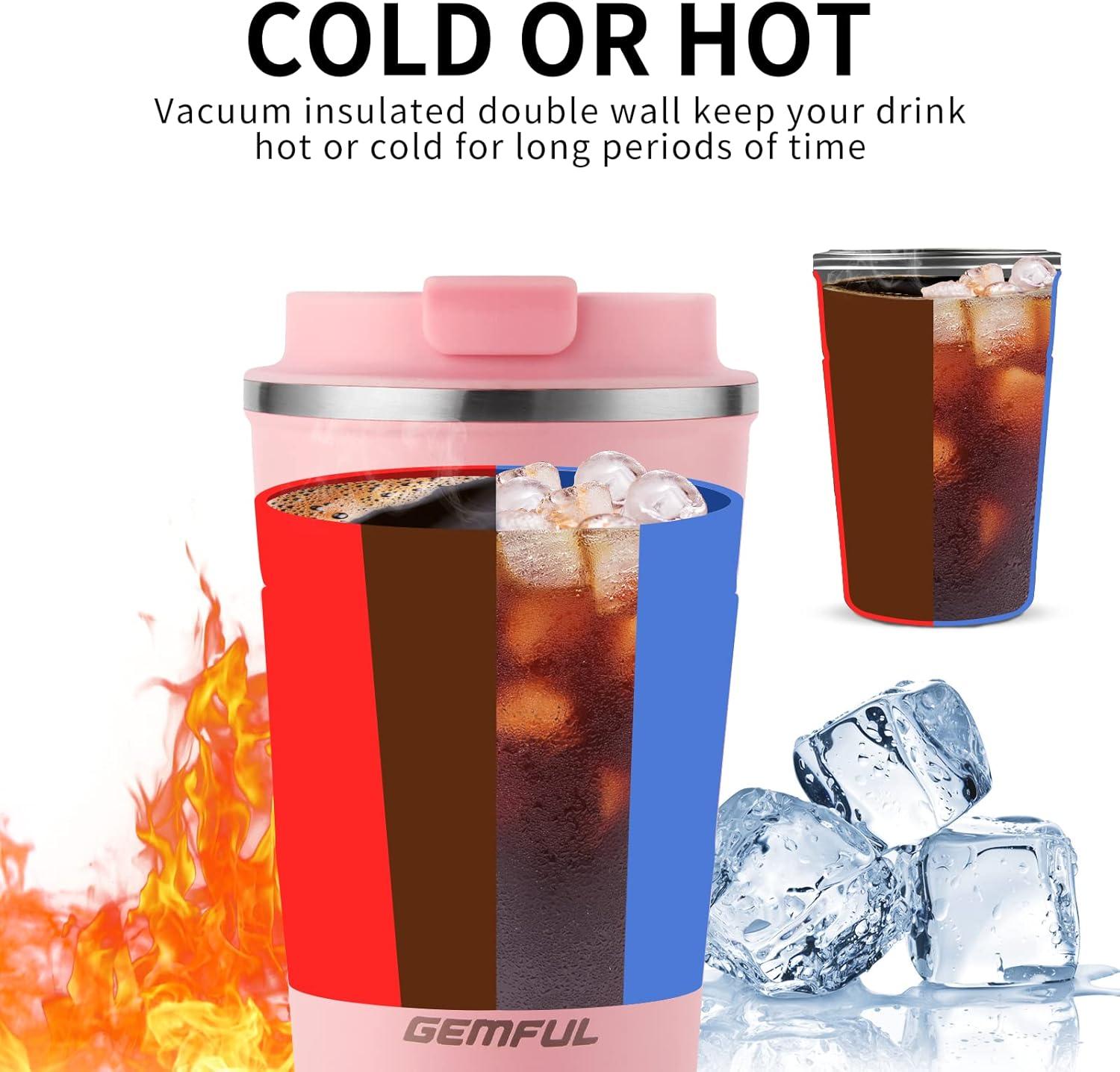GEMFUL To Go Travel Coffee Mug with Lid 13 oz Insulated Cups Spill Proof Tumbler Leak Proof Vacuum Stainless Steel Reusable for Hot Cold Drinks Women Men (6 Pack)(Pink-13 oz)