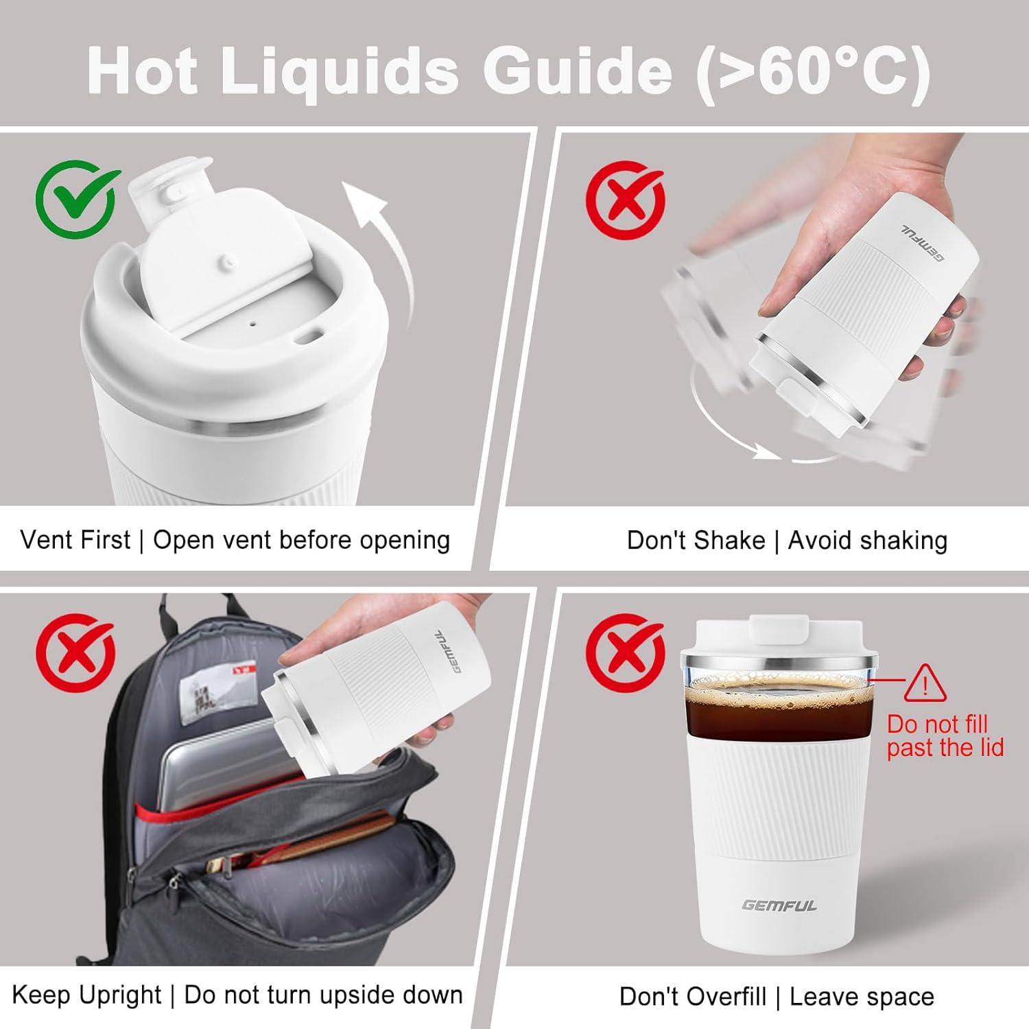 GEMFUL To Go Travel Coffee Mug with Lid 13 oz Insulated Cups Spill Proof Tumbler Leak Proof Vacuum Stainless Steel Reusable for Hot Cold Drinks Women Men (6 Pack)(White-13 oz)