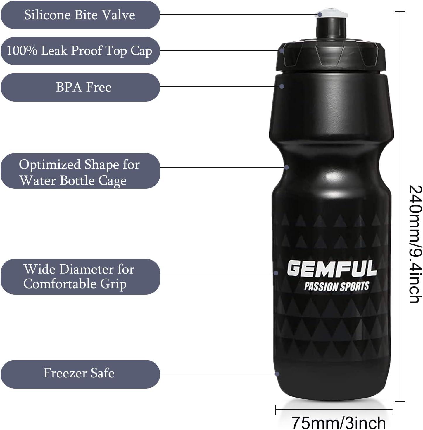 GEMFUL Water Bottle Biking BPA Free 24 Ounce 2 Pack(Black)